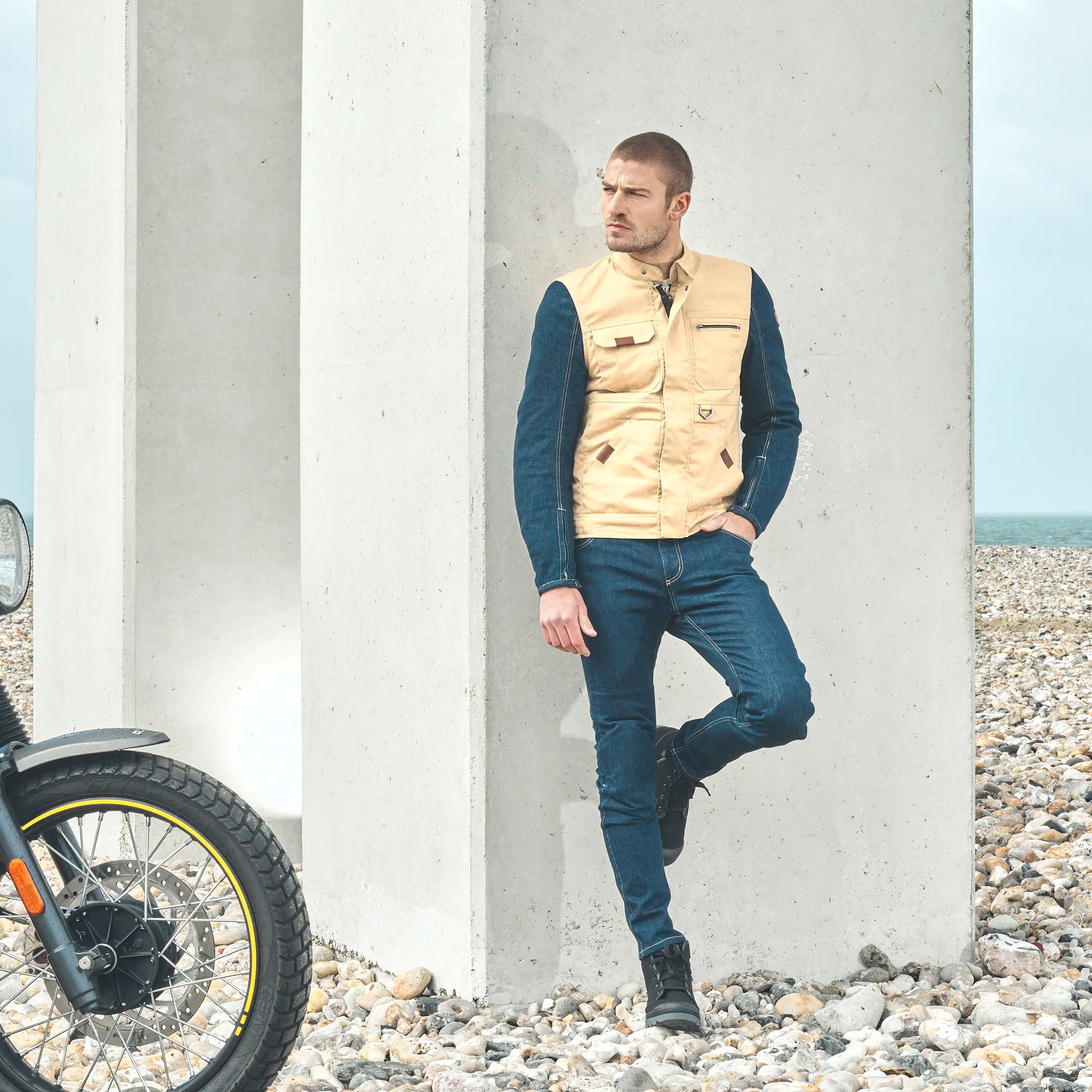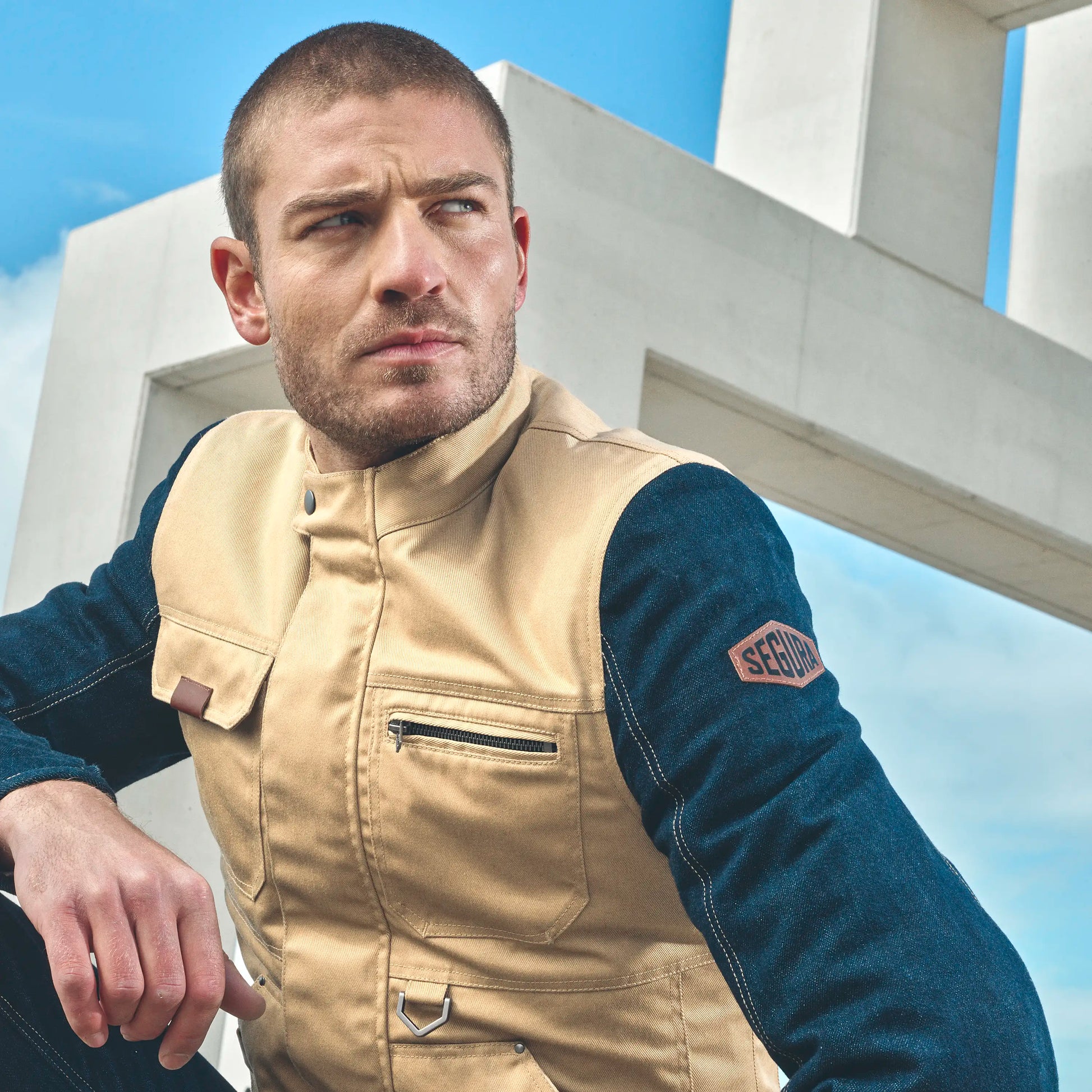 Elegant, durable, and comfortable, the blouson motorcycle OSBORN from SEGURA is a unique blend of Workwear inspiration and urban style. It pairs perfectly with the OSBORN jeans from SEGURA, creating a uniform and stylish look. The Denim sleeves add an extra touch of style, creating a piece that is as aesthetically pleasing as it is functional.