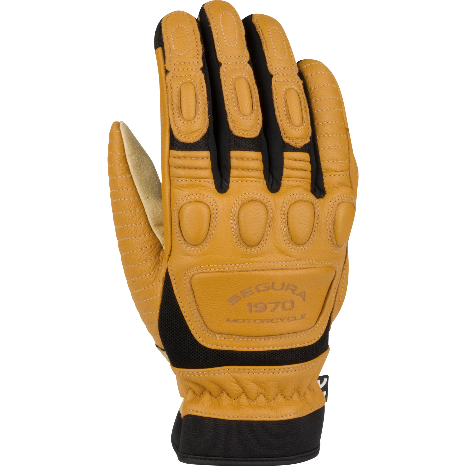 Les gants LADY JANGO de SEGURA, conçus à partir de cuir de chèvre, d'amara, de polyester et de néoprène, allient longévité et confort. Leur design unique, marqué par un embossing, des surpiqûres et des perforations, offre un style rétro tout en assurant une aération optimale pour les chaudes journées d'été.
