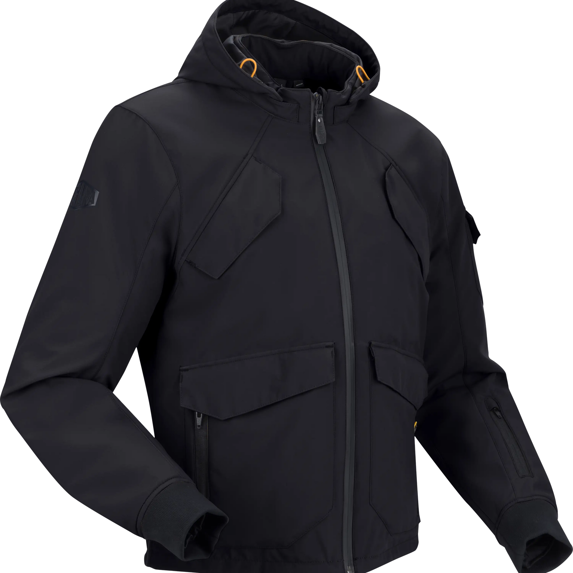 Pour ce qui est du confort, la capuche du blouson est amovible et un bouton pression d'attache permet de la maintenir en place. Confectionné en light softshell, il est léger et fonctionnel, idéal pour une utilisation quotidienne. Les poches à flaps magnétiques ajoutent une touche pratique à l'ensemble. Il dispose également de poignets bord-côte, d'un serrage au poignet interne et d'une poche réglable pour la protection du coude.
