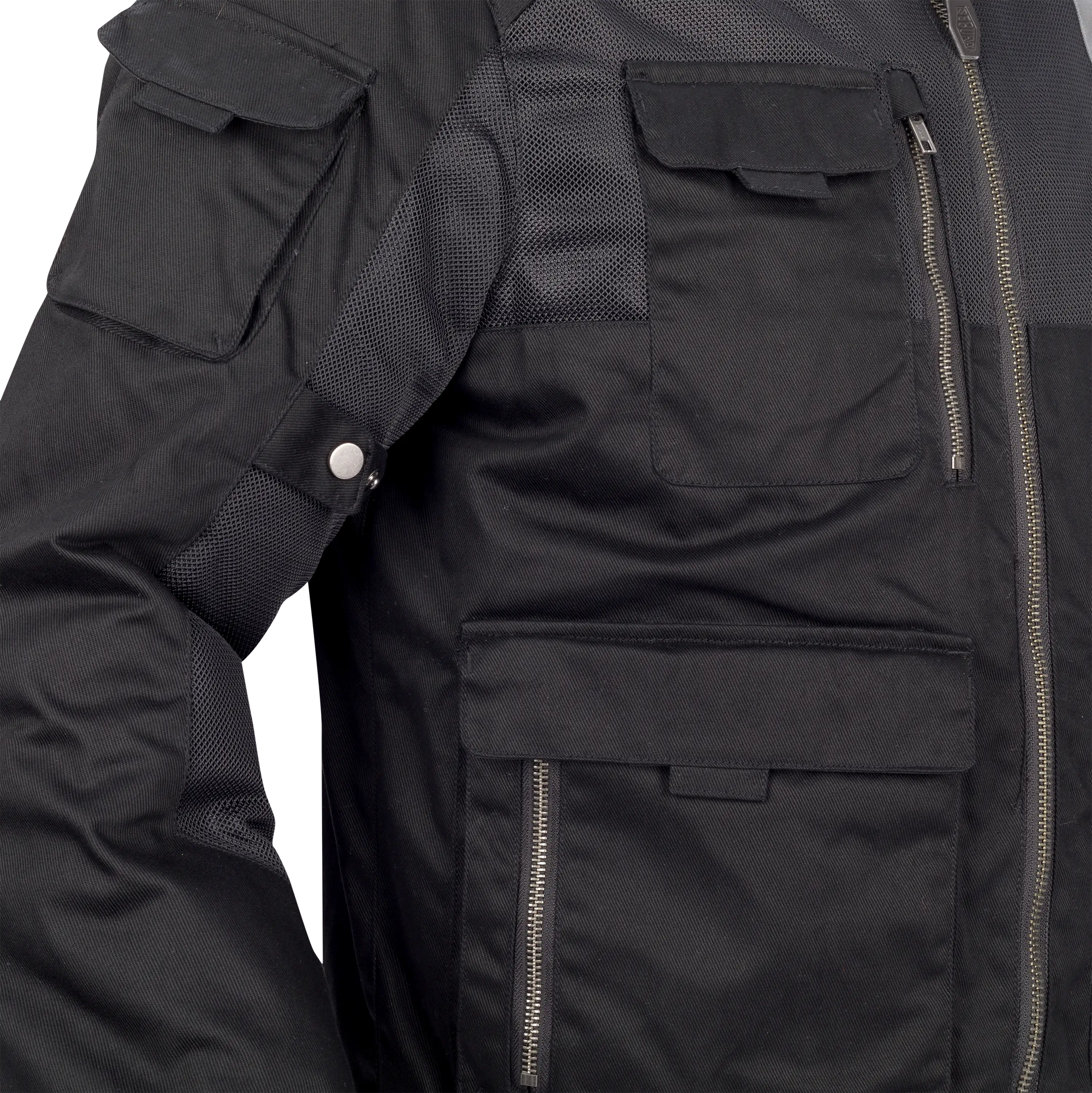 La sécurité est assurée par un arsenal complet de protections ALPHA certifiées CE EN1621-1 Niveau 1, positionnées aux épaules et aux coudes. Pour un ajustement millimétré, les protections de coudes sont logées dans des poches réglables, s'adaptant ainsi parfaitement à la longueur de vos bras. Une poche dorsale CE est également intégrée pour recevoir une protection complémentaire, tandis que la structure robuste du textile Serica assure une résistance à l'abrasion digne des plus grands standards, vous permettant de vous concentrer uniquement sur la route et les paysages.